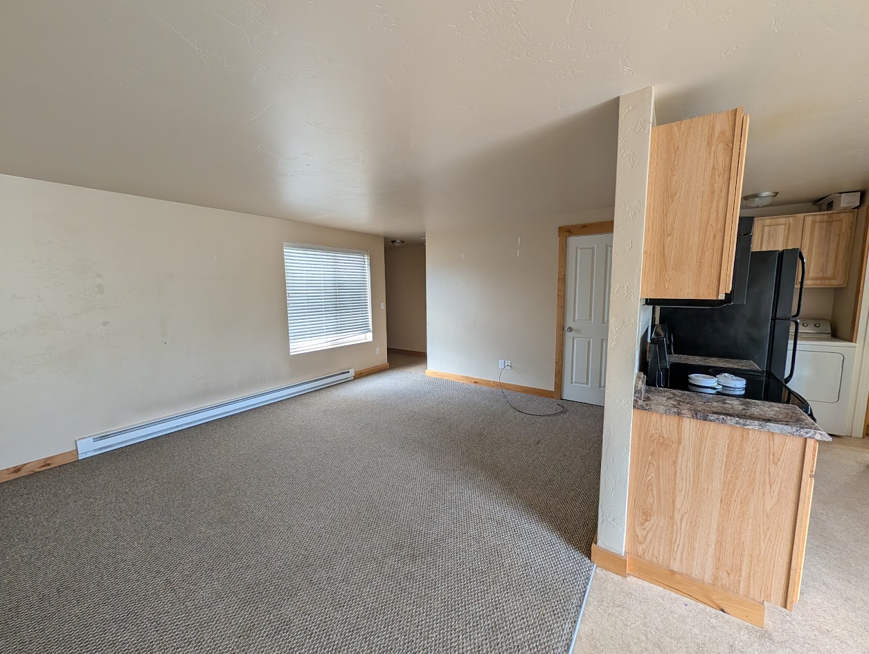 Long-term apartment is available now in Columbia Falls. 2 bedroom 1.5 bath, washer and dryer in unit, full kitchen, carport, and small storage unit. Pets are okay with pet deposit and pet rent.